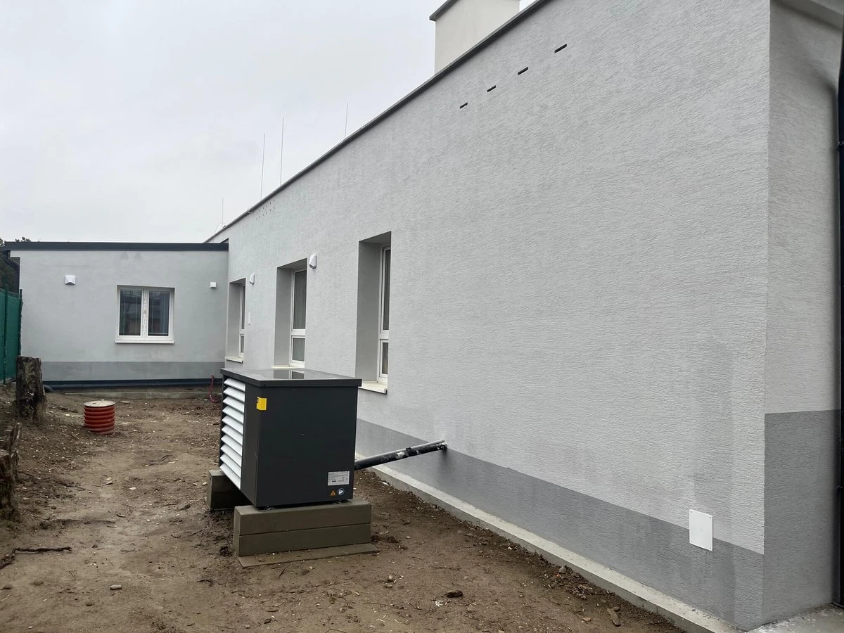 Za výsledkom stojí systémová kombinácia technológií. Zdroj tepla je tepelné čerpadlo vzduch-voda, ktoré pokrýva vykurovanie aj ohrev teplej vody. Na streche je inštalovaných 18 fotovoltaických panelov s celkovým výkonom 7 380 W. Vetranie zabezpečuje 19 lokálnych rekuperačných jednotiek s účinnosťou spätného zisku tepla 85 až 90 %. Obvodový plášť je zateplený, strecha aj okná vymenené.
